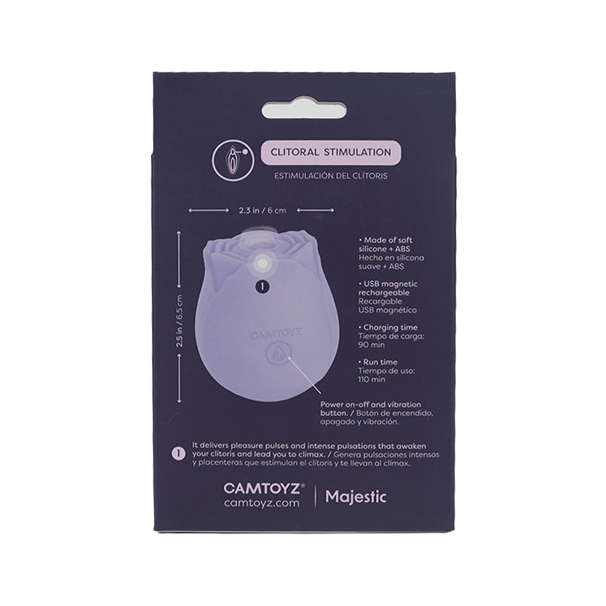 | Recomendaciones de uso | Encender el dispositivo usando el botón de encendido. Ajustar la vibración o pulsaciones usando los botones correspondientes para encontrar la intensidad deseada. Limpieza: Limpiar antes y después de cada uso con un limpiador suave y agua tibia. Almacenaje: Guardar en un lugar seco y alejado de fuentes de calor. |